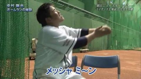 そしてその特集の中で、中村剛也が自身のバッティング技術の解説として語ったのが「メッシャミ~ン」である。